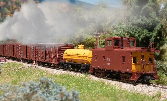 Im Modell gibt es gleich 11 Wagen für Berkshire. Dabei sind je ein 5-Wagen-Set von Märklin und von TRIX in Angebot. Als Abschluss muss das obligatorische Caboose an den Zug. Alle Wagen sind mit vielen vielen separat angesetzten Teilen sehr fein detailliert.