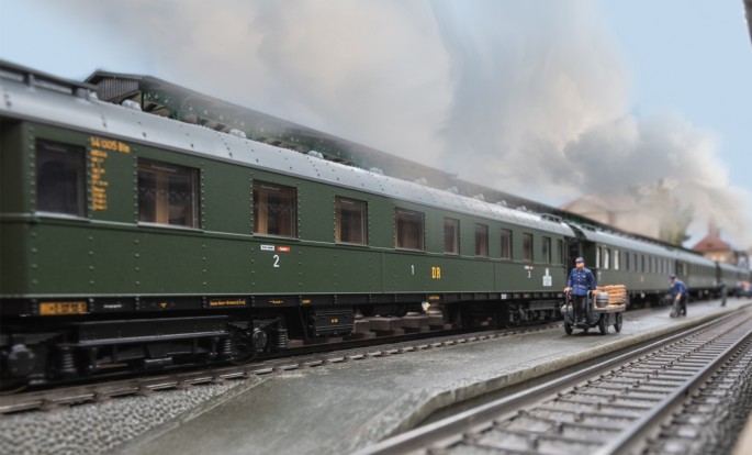 Passend zur Lok erscheint ein vierteiliges Schnellzugwagenset und ein einzelner Schnellzug-Ergänzungswagen.